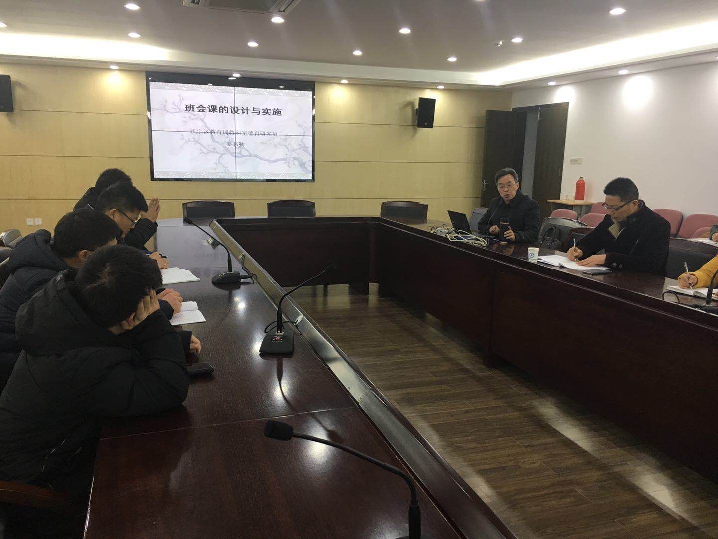1月10日下午,江宁高职校召开以“班集体建设”为主题的班主任培训会。此次培训聚焦主题班会课研究与实践,旨在提高班主任主题班会课的设计与操作能力。本次培训由学生科徐海洋副科长主持,特邀江宁区德育研究室研究员姜书勤老师主讲,学生科曾庆文科长和全体班主任参加了此次会议。