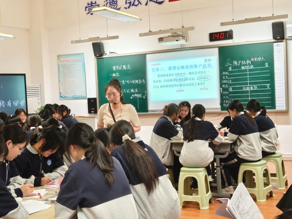 10月14日下午,由南京市职教(成人)教研室组织的财经商贸类市级公开教研活动在我校举行。我校财会专业陆志瑀和王萍两位青年教师分别开设了以“借贷记账法”和“供求与市场均衡”为课题的公开课,来自全市8所职业学校共计40余位相关专业教师参加了此次活动。