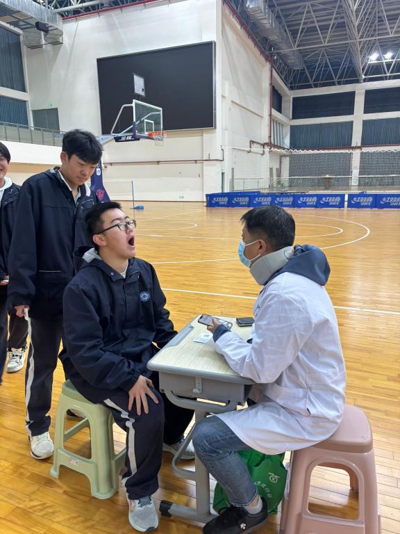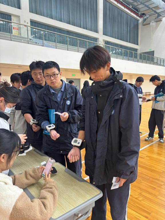 此次体检工作筹备周密,学生科组织协调,卫生室明确体检流程、场地分区,并对志愿者进行岗前培训,确保各环节衔接顺畅。体检现场,志愿者们主动引导学生有序排队,协助医护人员开展体检工作。