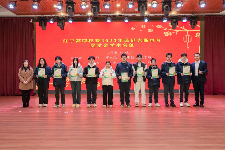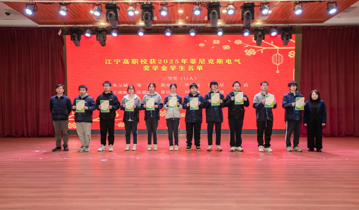 11月19日上午,南京江宁高职校综合楼报告厅内暖意融融、掌声雷动。2025年菲尼克斯电气奖学金颁奖典礼暨第八届“菲尼克斯智能制造订单班”开班仪式在此举行。作为省级校企合作示范组合培育项目的关键实践,活动以“深化产教融合、聚力校企协同、培育智造英才”为核心,搭建起产业需求与人才培养的高质量对接桥梁,奏响校企携手育人的新乐章。