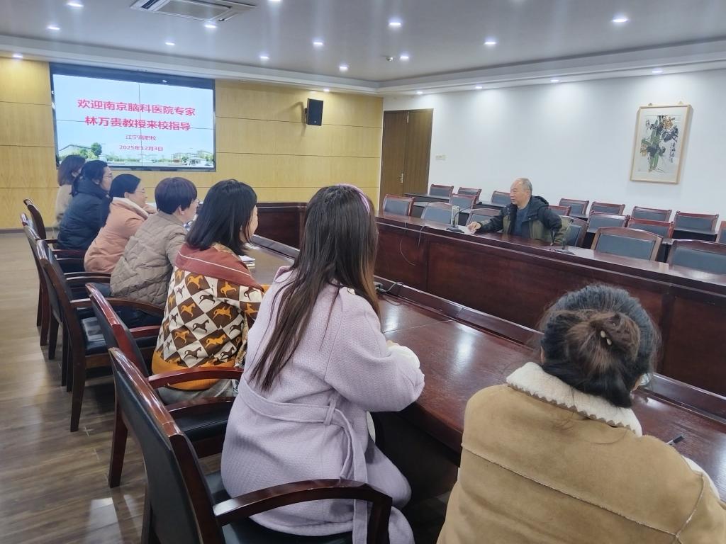 面对学生日益复杂多样的心理状况,为切实提升学校心理健康教育工作的专业化水平,深化医教协同机制,2025年12月3日下午,南京江宁高职校特邀江苏省知名精神卫生机构——南京脑科医院的心理科专家林万贵主任莅临指导,为学校心育中心全体心理教师举办了一场深度、务实且极具指导意义的专题培训讲座。