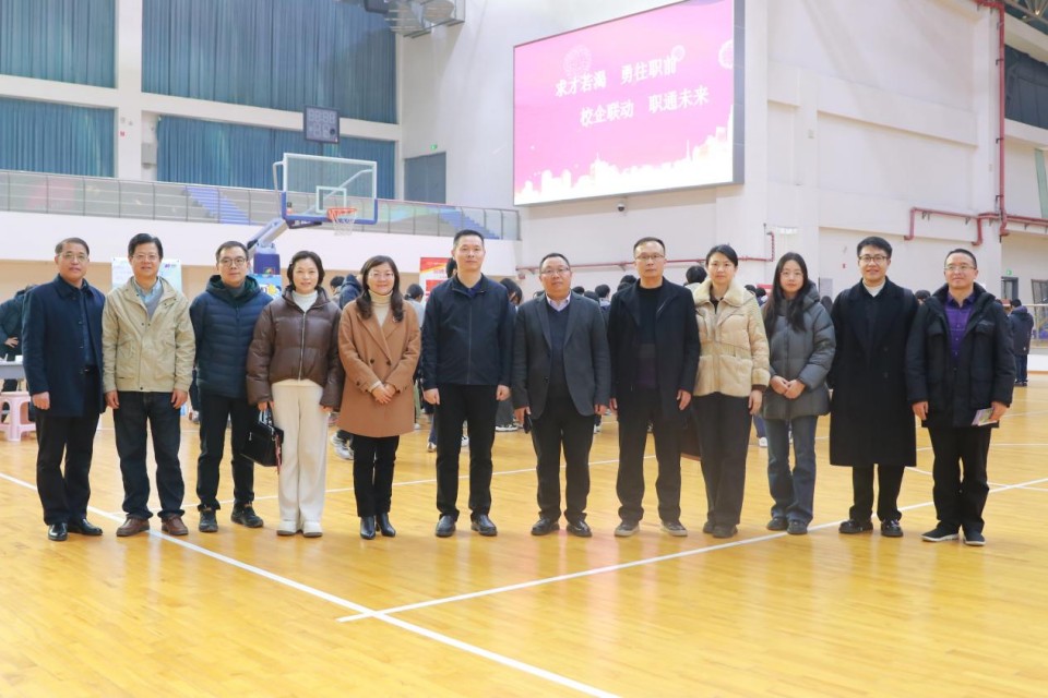 17日下午,周会达主任为贵州同仁作《现代学徒制实践探索及问题思考》专题讲座后,张春雨书记、刘江华副校长全程陪同陈世举书记一行来到体育馆,参加“2026年企业用工需求对接暨校园招聘会”。本次招聘会共吸引23家行业龙头企业进校揽才,提供岗位600余个,涵盖机电、数控、财会、电子商务、旅游服务等多个专业。陈世举书记现场与格力电器、中兴通讯、南京泉峰科技等企业深入交流,初步了解相关企业用工需求及毕业生实习就业意向。