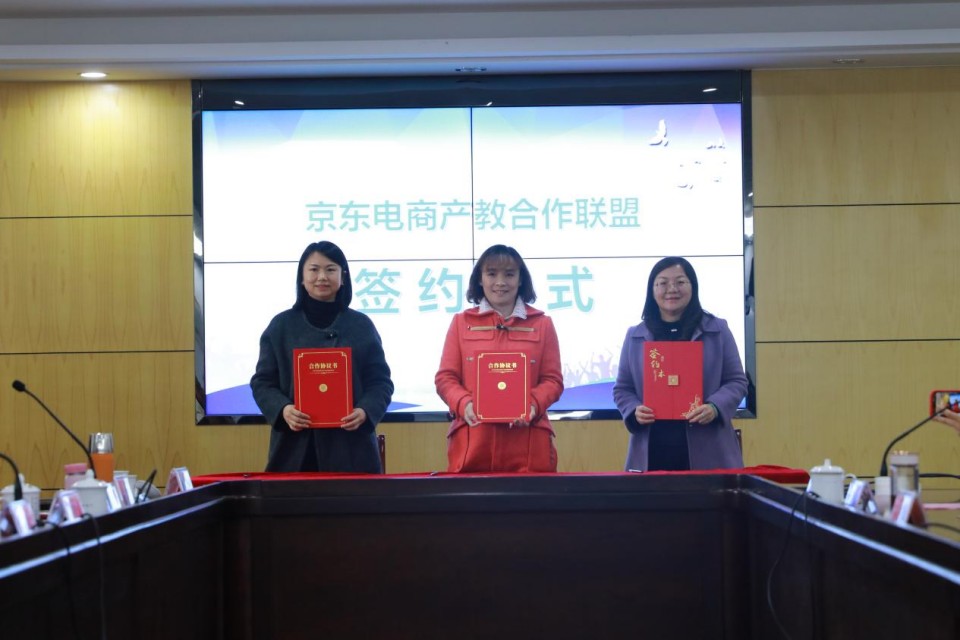 16日上午9:30,启动仪式在综合楼303室正式拉开帷幕。张春雨书记致欢迎辞,向远道而来的贵州同仁表示热烈欢迎,并回顾了两校自2025年初建立对口协作关系以来在师资共享、资源共建、学生共育等方面取得的阶段性成果。民革江宁区基层委主委鲁宏振介绍了“中山博爱·白秉旭名师交流工作室”建设情况;沈茜、张斌共同为工作室揭牌;随后,马富平副校长与陈世举书记代表两校签署《江宁高等职业技术学校与毕节市财贸学校专业共建框架协议》,并与江苏京东信息技术有限公司三方共同签订《京东电商产教融合战略合作协议》,为后续教师互派、课程共建、实训共享、学生共育奠定制度保障。