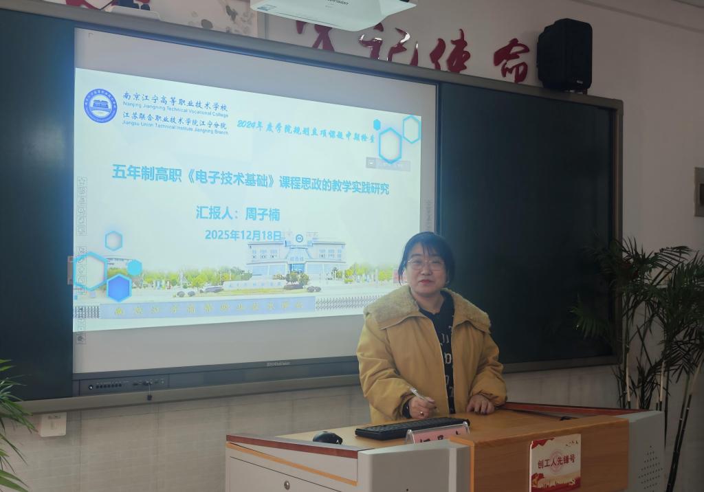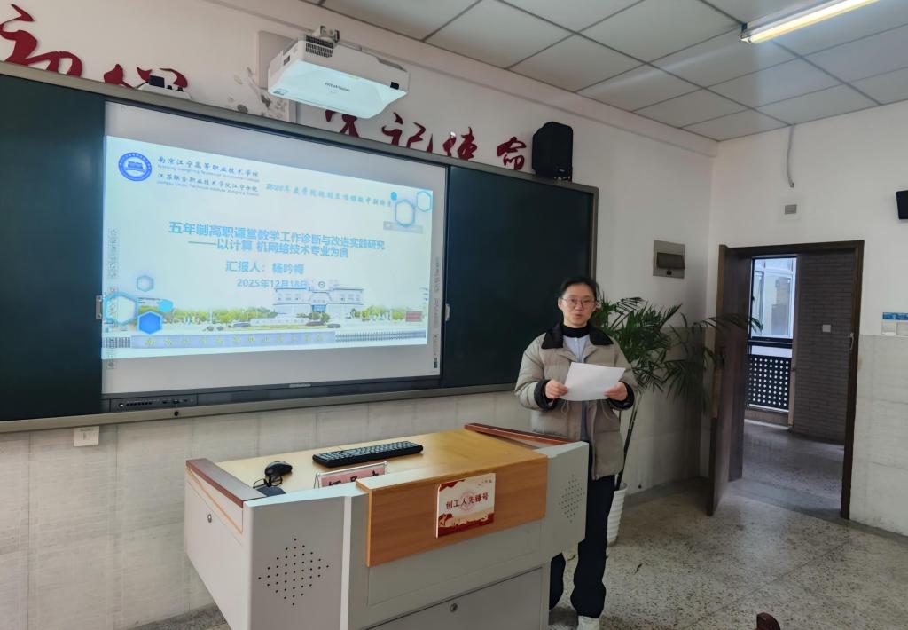 中期汇报环节,三位课题主持人依次围绕各自研究进展进行了详实汇报:周子楠老师以《五年制高职〈电子技术基础〉课程思政的教学实践研究》为题,系统介绍了如何将思政元素有机融入专业课程教学,通过案例设计、情境创设和价值引导,实现知识传授与价值引领的同频共振;杨吟梅老师聚焦《五年制高职课堂教学工作诊断与改进实践研究——以计算机网络技术专业为例》,展示了基于PDCA循环的质量改进模型在课堂诊断中的应用路径,提出了具有可操作性的改进建议;杭海老师则围绕《五年制“221”分段式班级管理研究》,阐述了其创新提出的“2年基础培养+2年专业强化+1年综合提升”分段管理模式,在学生行为养成、学业规划与职业素养培育方面的初步成效。