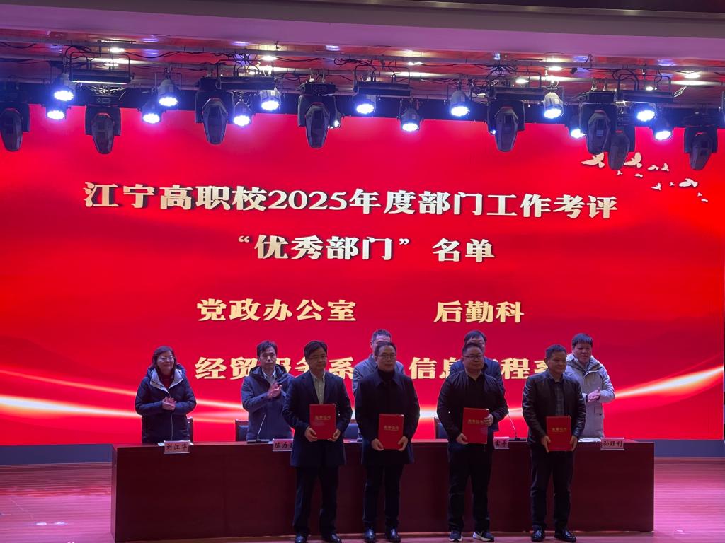此次会议统一了思想、明确了方向、鼓舞了干劲,为学校 2026 年各项工作高质量开展奠定了坚实基础,旨在要求全体教职工要迅速传达落实会议精神,收心归位、凝心聚力,以饱满的精神状态投入新学期工作,严守纪律规矩,狠抓工作落实,奋力开创江宁高职校发展新局面。(图文:尹艳雯;校对:尹艳雯;初审:胡进;终审:马富平)