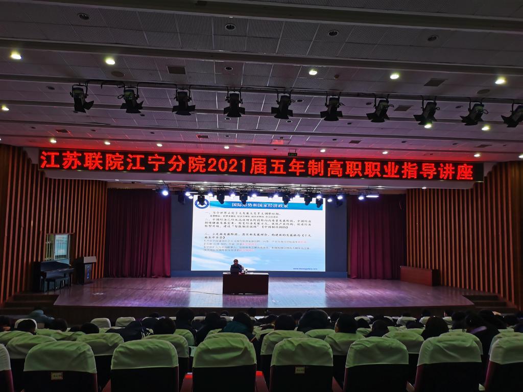 12月21日下午,江宁高职校招生就业处在图文中心报告厅组织举办2021届五年制高职职业指导讲座,陈东升主任担任主讲,经贸服务系2016级高职班全体学生和班主任同其他系部高职毕业班师生一同聆听了本次讲座。
