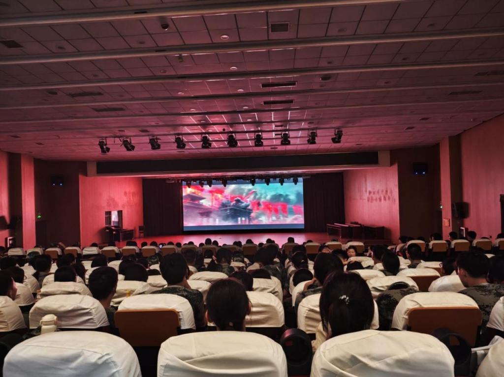 学校的人文关怀贯穿军训始终。为保障后勤,学校每日为参训师生提供充足的面包和矿泉水,补充能量,驱散疲惫。此外,还特别安排了观看励志电影活动,在放松身心的同时,进一步增强了同学们的国防观念和爱国情怀。