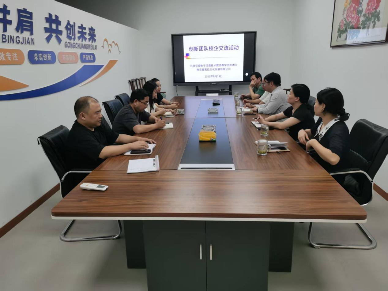 2025年9月20日上午,信息工程系与南京奥若拉文化传媒有限公司就加强校企深度合作、发挥校企协同育人等事项进行深入探讨。信息工程系主任王军、副主任胡萍、副主任陈飞、计算机教研室主任姚友军、副主任陶磊和企方一同参与研讨,电子信息市创新团队成员参加活动。