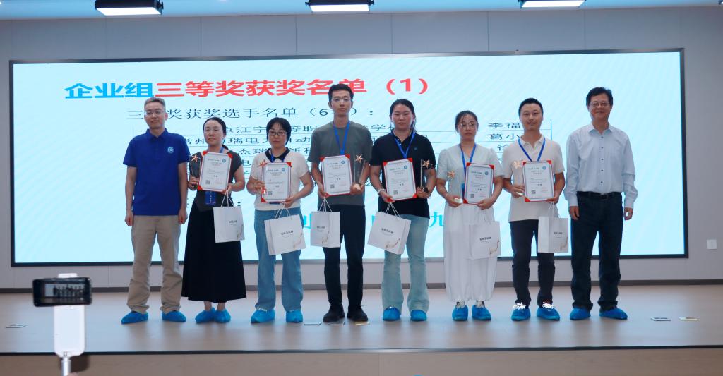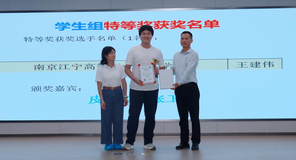 江宁高职校荣获集体奖一项,个人奖三项。学校获得“优秀组织奖”,2023级高职电信班王健伟同学获得特等奖(指导教师:李福斌、班主任:李福斌),2022级高职物联网班杨依玲同学获得一等奖(指导教师:白秉旭、班主任:徐惠雯),在高手如云的江苏省电子制造行业大赛中,李福斌老师首次参加企业组比赛就获得了三等奖。另外,白秉旭老师代表学校领奖,并作为嘉宾为企业组获奖选手颁奖。