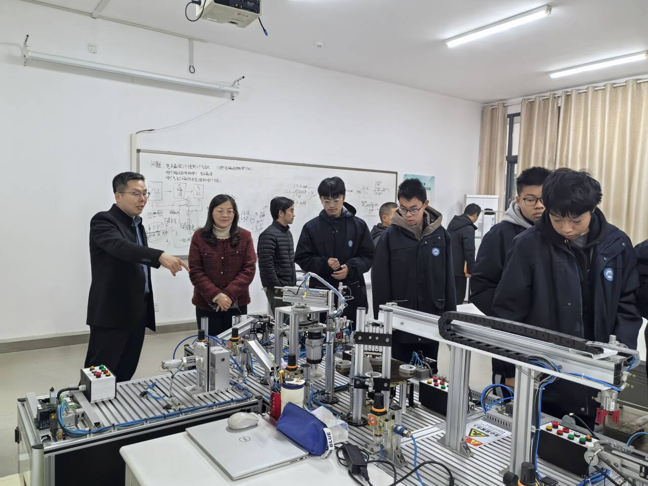 宋永献副院长对江宁高职校师生一行的到来表示热烈欢迎。他表示,“3+4”项目学生专业基础好,动手能力强,期待电子工程学院的未来“生力军”能够在国内和国际比赛的舞台上崭露头角。他还带领师生参观了工科楼北楼的电子工程学院物理实训室、智能装备研究中心和校企合作示范实验中心等场所。
