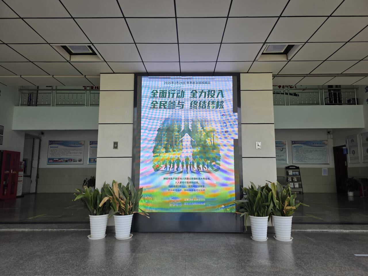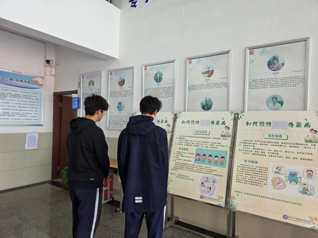 活动期间,竹山路校区卫生室利用新媒体平台,制作了结核病防治知识美篇,内容涵盖结核病的传播途径、常见症状和预防措施等方面,通过班主任工作群推送至各班级,确保健康知识精准触达每一位学生。同时,在综合楼门口醒目位置摆放了结核病防治知识宣传展板,图文并茂、简明扼要。为进一步扩大宣传覆盖面,卫生室还充分利用校园广播开始播报结核病防治知识,通过真实案例与防护要点相结合的方式,让健康理念深入人心。此外,综合楼的电子大屏全天循环播放结核病防治宣传海报,将“勤洗手、多通风、强体质”等防病要点融入视觉设计,使师生在潜移默化中增强防护意识。